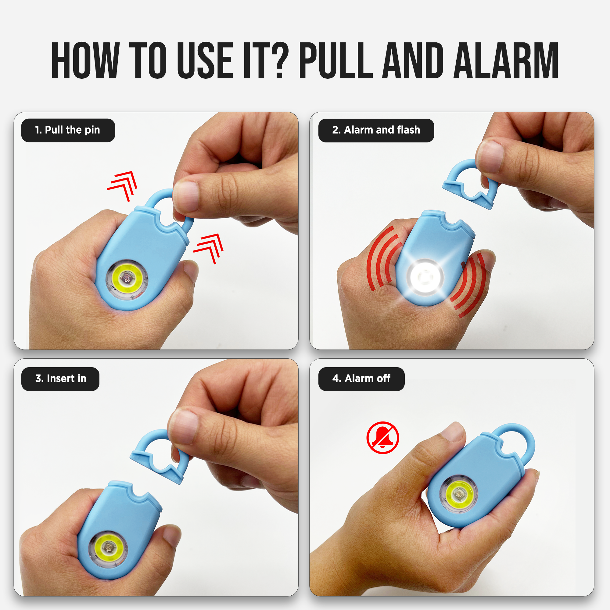 There is no need to worry if the alarm accidentally goes off! Simply insert the pin back into the device to stop the sound.